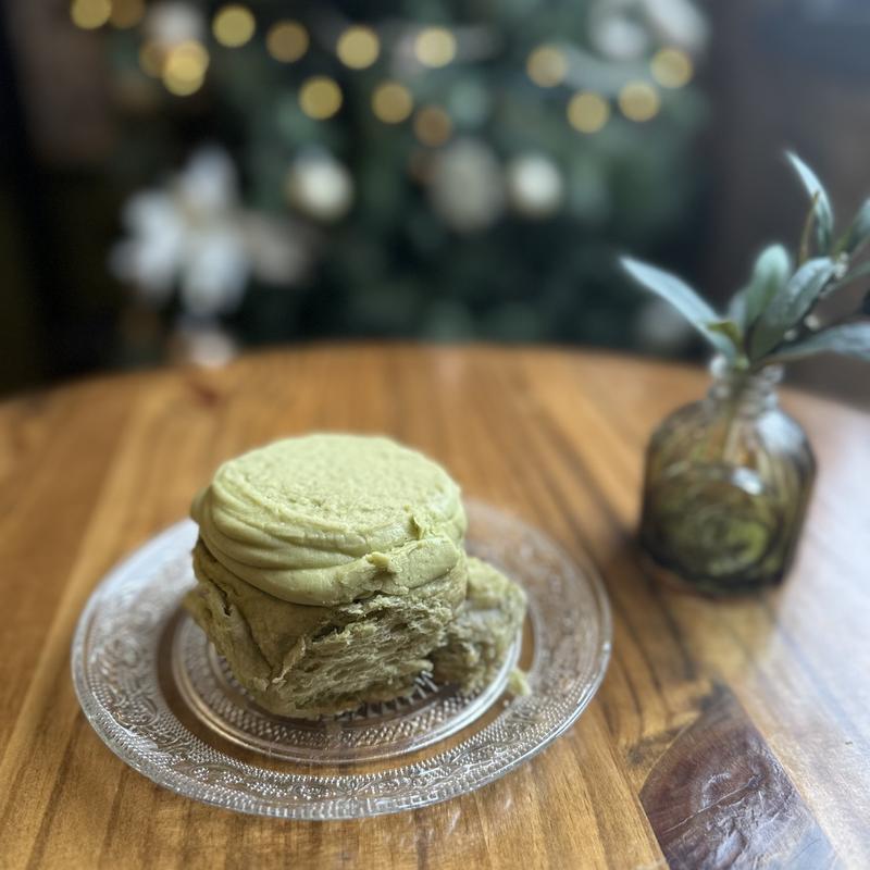 Matcha with caramel drizzle and your choice of milk with Salted caramel cold foam on top.