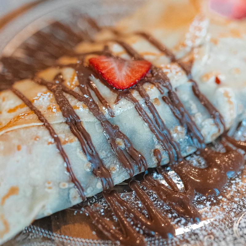 Crepe stuffed with peanut butter, bananas, cinnamon, and honey.